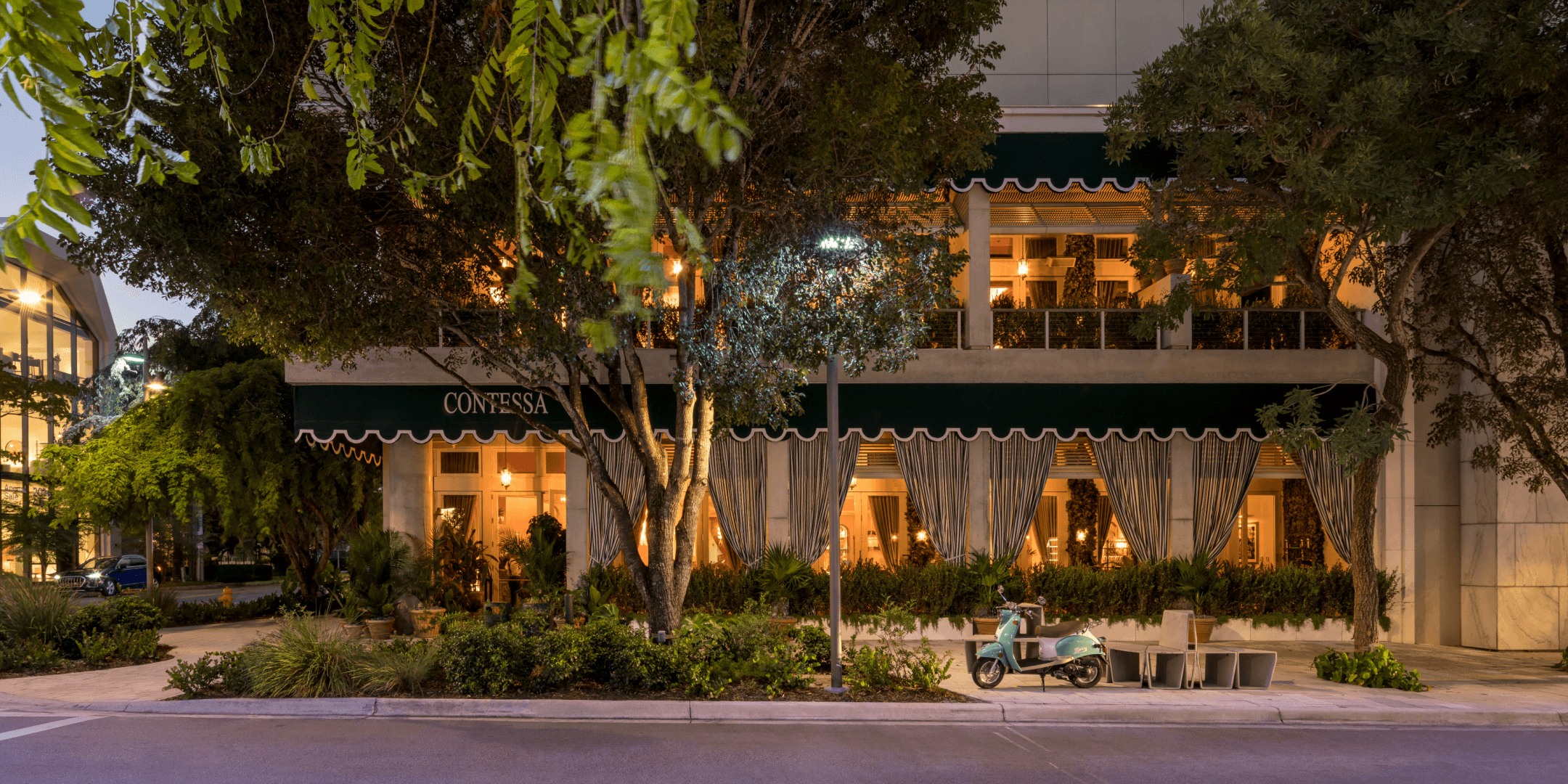 A sophisticated ode to the cuisine of Northern Italy, Contessa debuted in the Miami Design District in 2022 with a wealth of lush design accents that evoke Lake Como. The two-story space with its spectacular alfresco terrace, pink-hued bar and collection of magnificent framed mirrors, nods to the high fashion of the famed neighborhood.